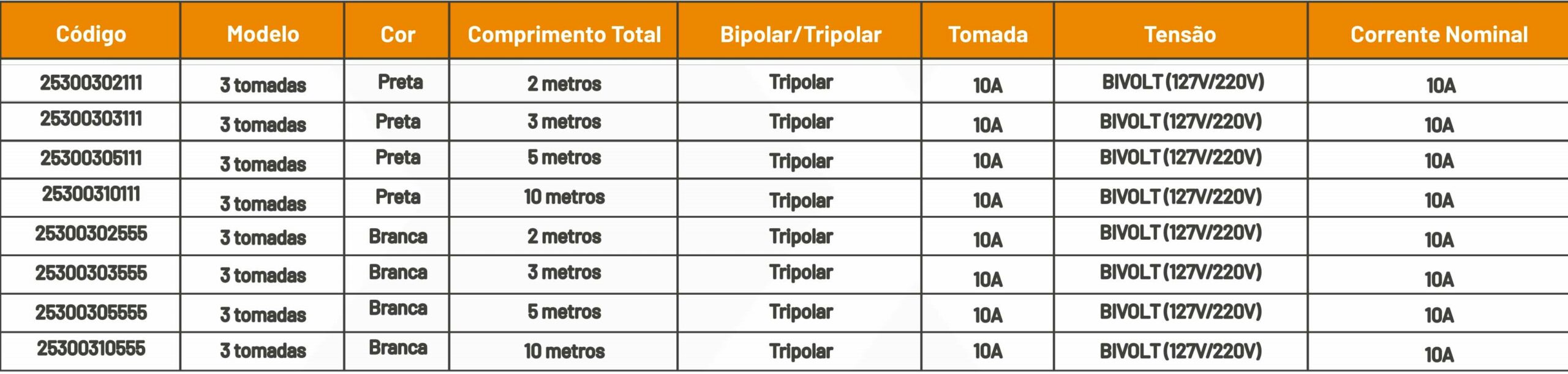 Produzidas com cabos de 2, 3, 5 ou 10 metros, as extensões elétricas Fiolux foram projetadas para facilitar seu dia a dia, além de possibilitar a conexão de um maior número de equipamentos. Nossos produtos são fabricados em conformidade as normas regulamentadoras proporcionando maior segurança aos usuários.